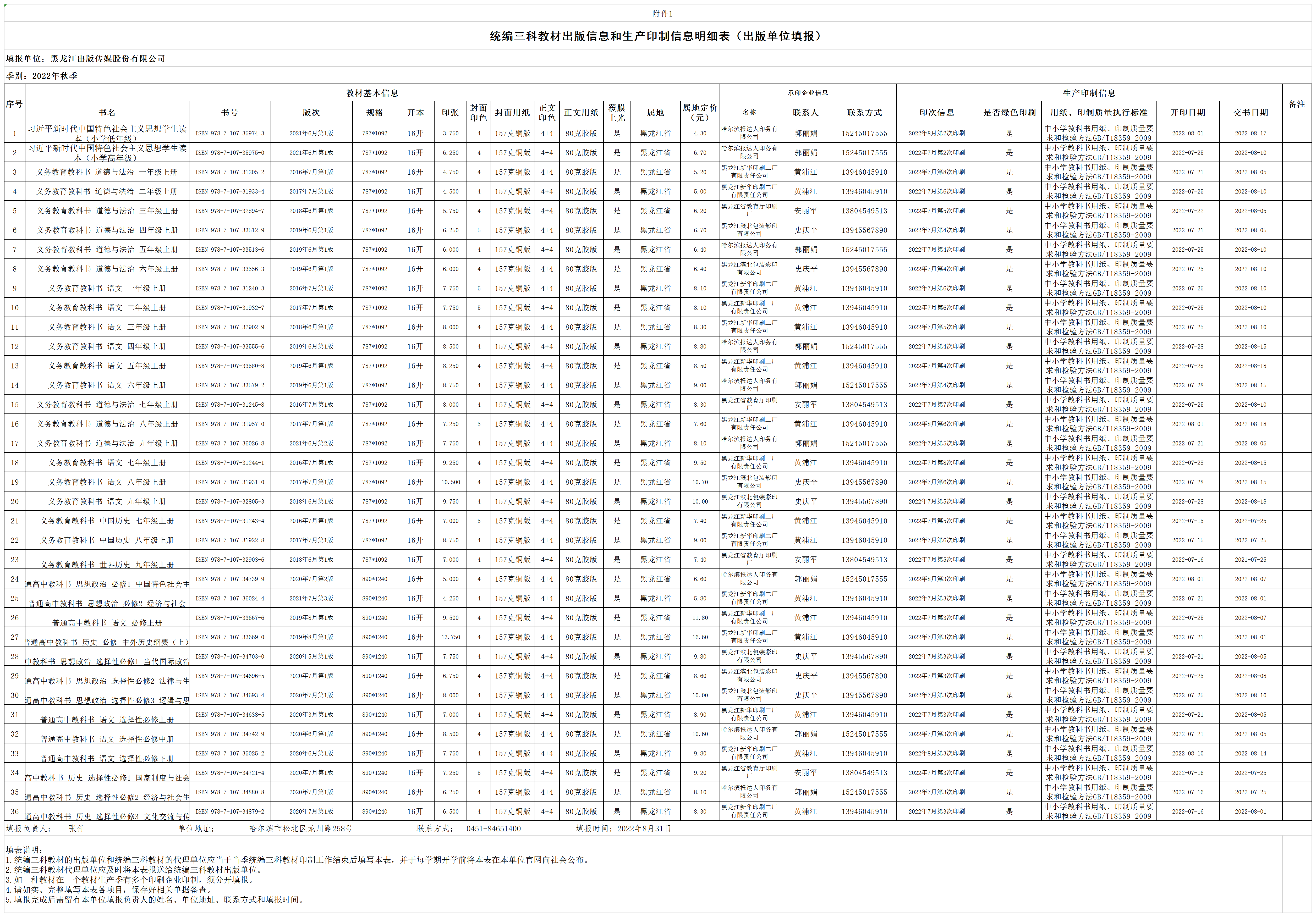 按照相关文件要求,现将统编三科教材出版和生产印制信息公示明细表进行公示。