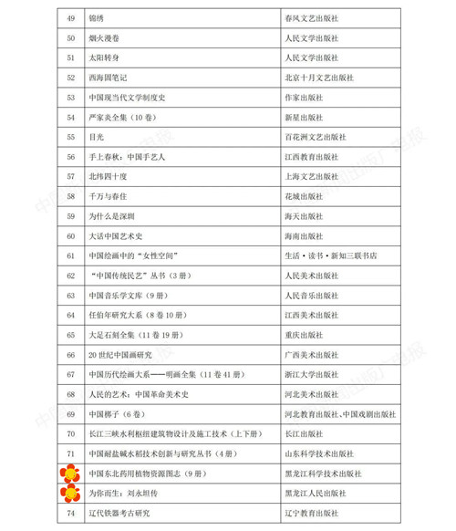 黑龙江科学技术出版社《中国东北药用植物资源图志》(9册),黑龙江人民出版社《为你而生——刘永坦传》以及黑龙江科学技术出版社与北京科学技术出版社联合出版的《中国藏药资源特色物种图鉴》(4册)获第八届中华优秀出版物(图书)奖。