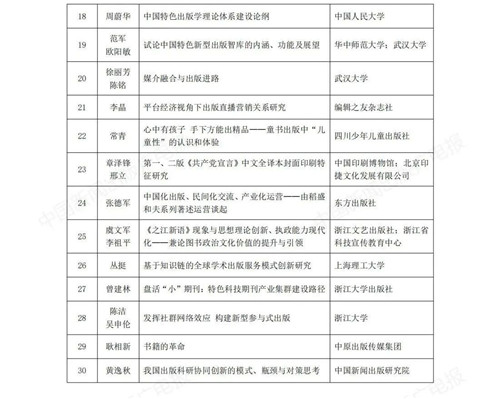 2月27日,第八届中华优秀出版物奖获奖名单公示。本届获奖图书100种、提名奖100种;获奖音像电子出版物30种、提名奖80种;全国优秀出版科研论文30篇。
