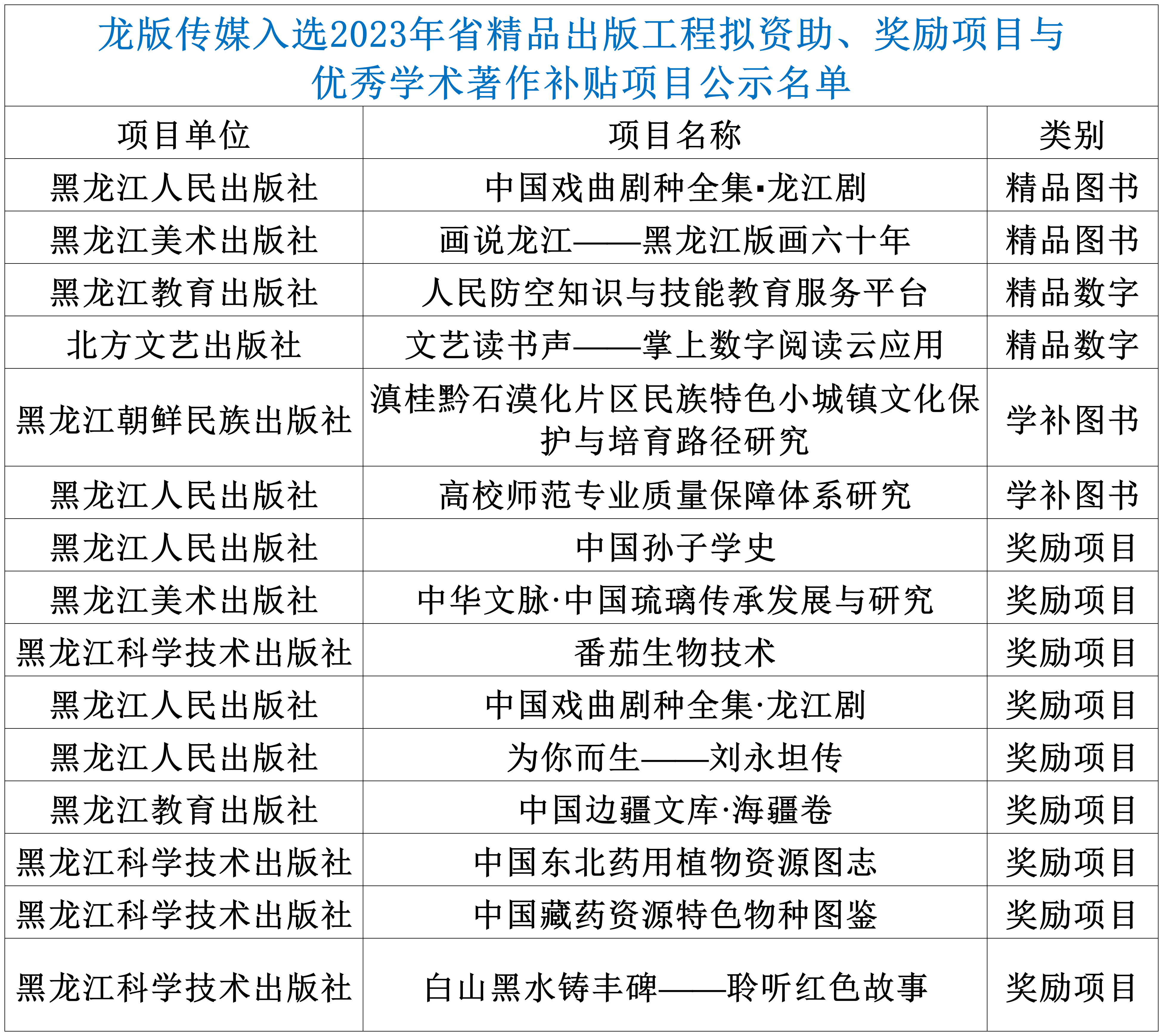 2023年省精品出版工程拟资助、奖励项目与优秀学术著作补贴项目公示 龙版传媒15个项目入选